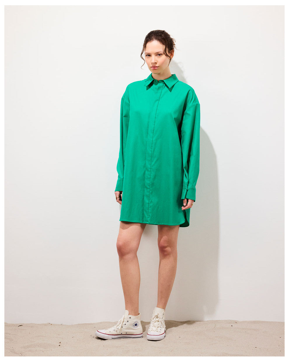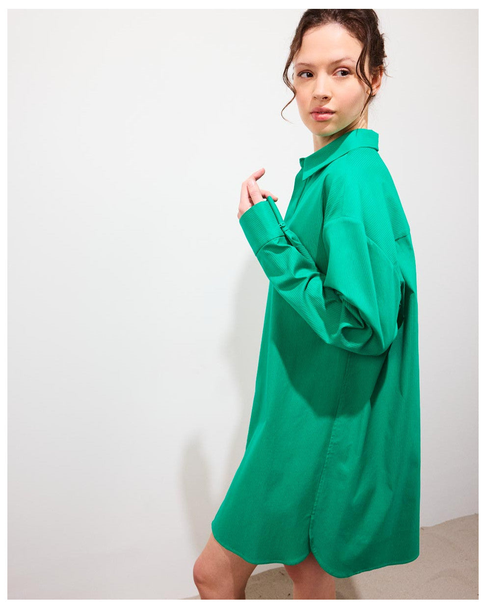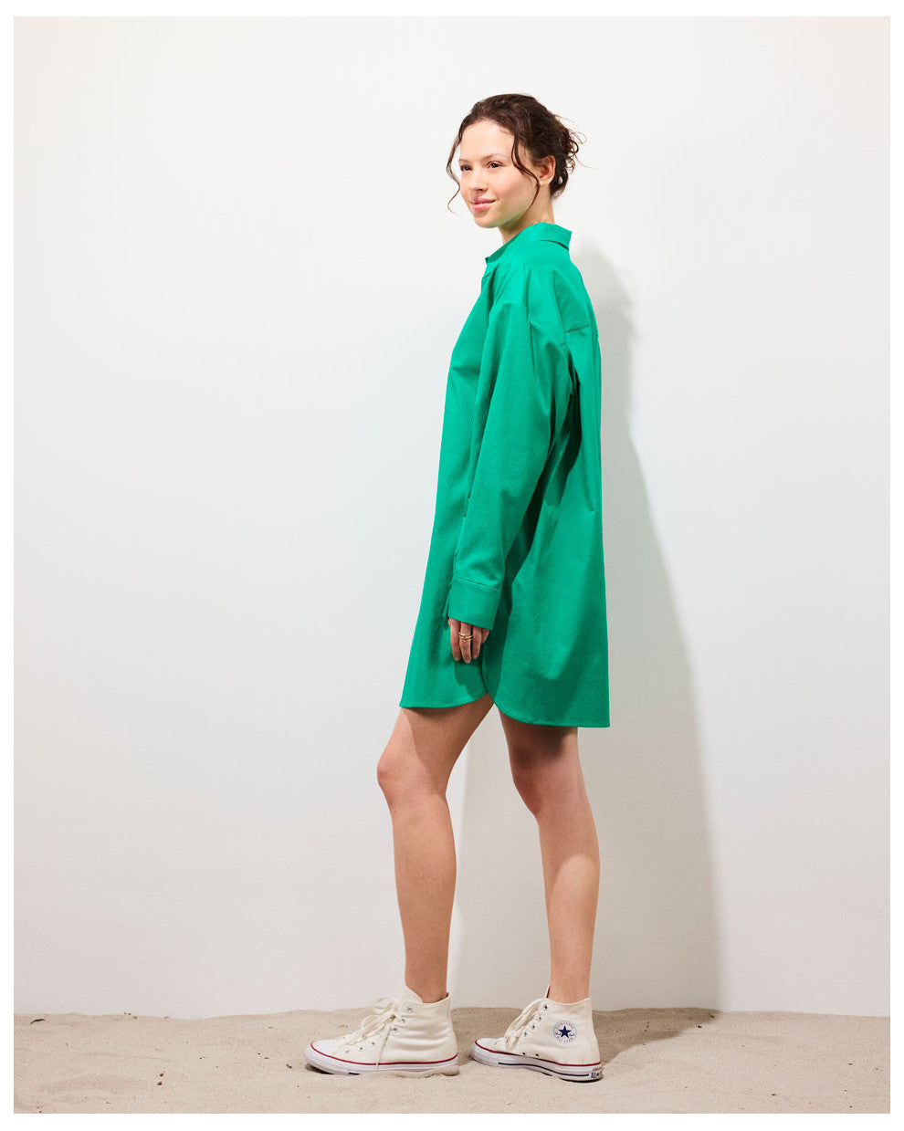 Robe chemise HANKS en coton léger, idéale pour un look décontracté et moderne. Sa coupe ample et ses détails subtils en font une pièce facile à porter, à adapter selon vos envies. À porter seule, ceinturée ou ouverte pour varier les styles !