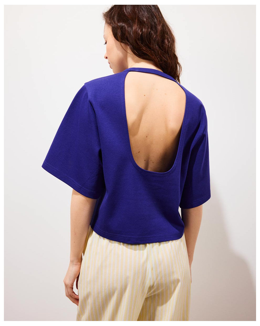 Top dos nu court et ample, parfait pour un look estival léger et décontracté. Sa coupe fluide et ses détails épurés en font une pièce facile à porter au quotidien.