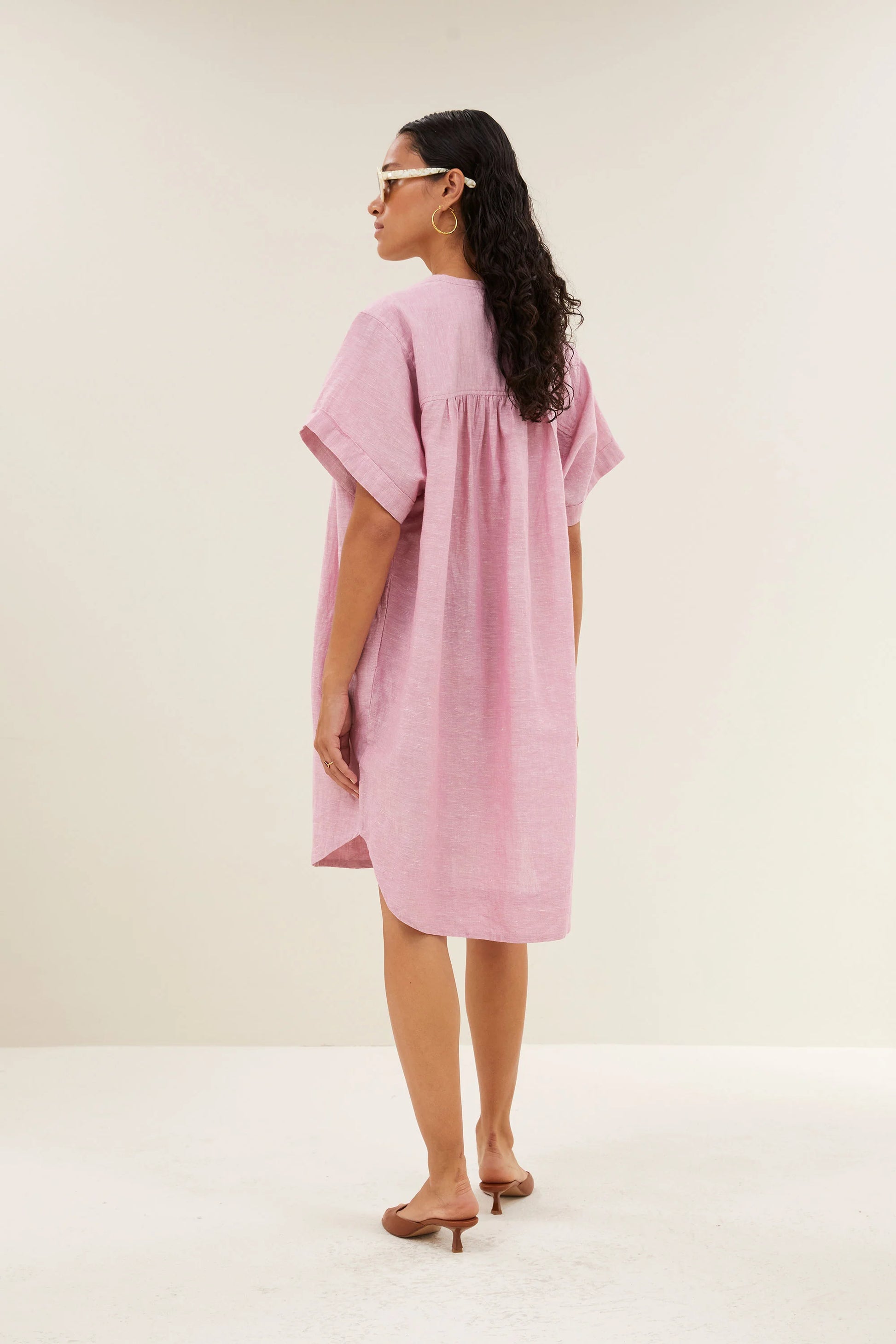 La robe Amber mise sur une silhouette fluide et confortable, idéale pour les journées ensoleillées. Sa coupe ample et ses manches courtes offrent une liberté de mouvement tout en gardant une allure élégante.